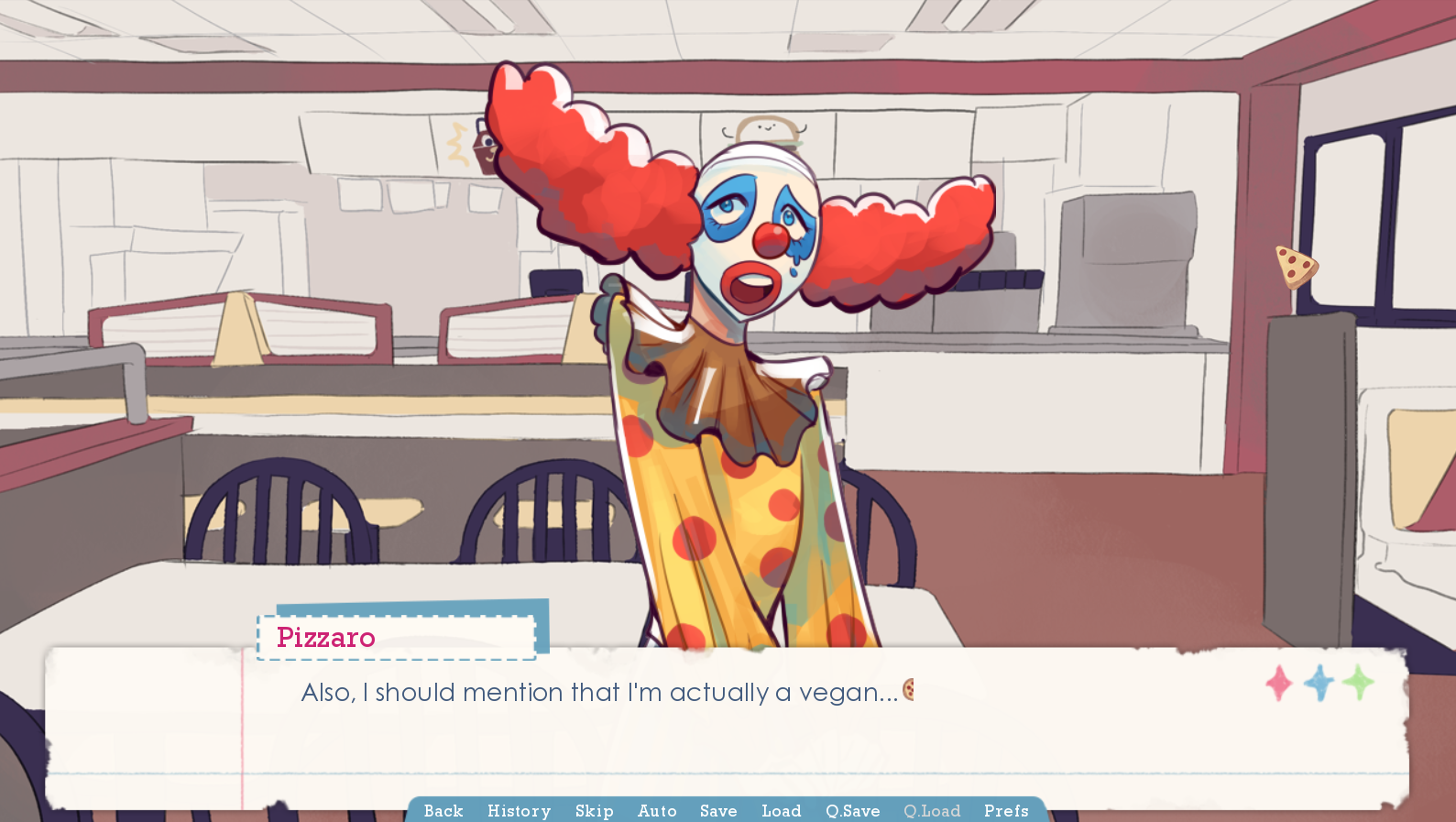 For our debut, we’re bringing you some honkin’ good indie visual novels that feature colourful and clowny characters. Between an evil jester confining you to a wagon and a dressed-up pizza jokester, these fun little stories will have you clownin’ around for more.