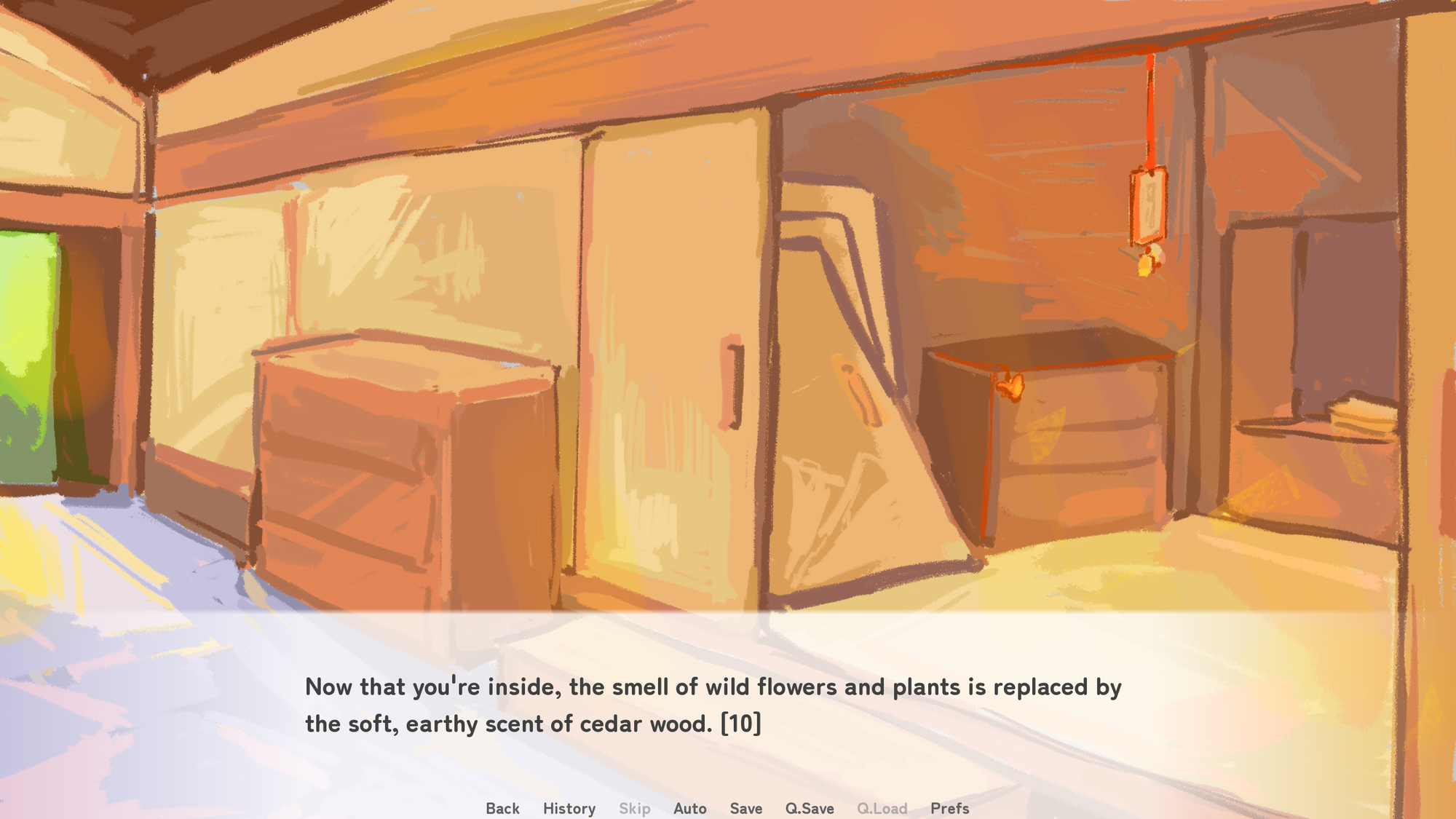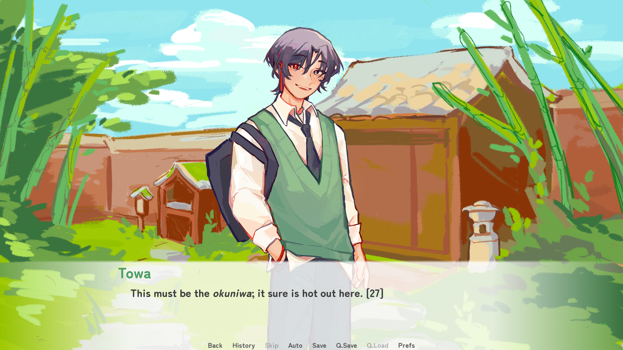 Bright, saturated shades of green and tan transport you to the countryside of Japan, giving you (the player) a sense of calm and serenity. I personally love the hand-painted aesthetic for the background art and character art, and the outfit design for Toma is just as lovely. Fresh and sweet — just like the tale.