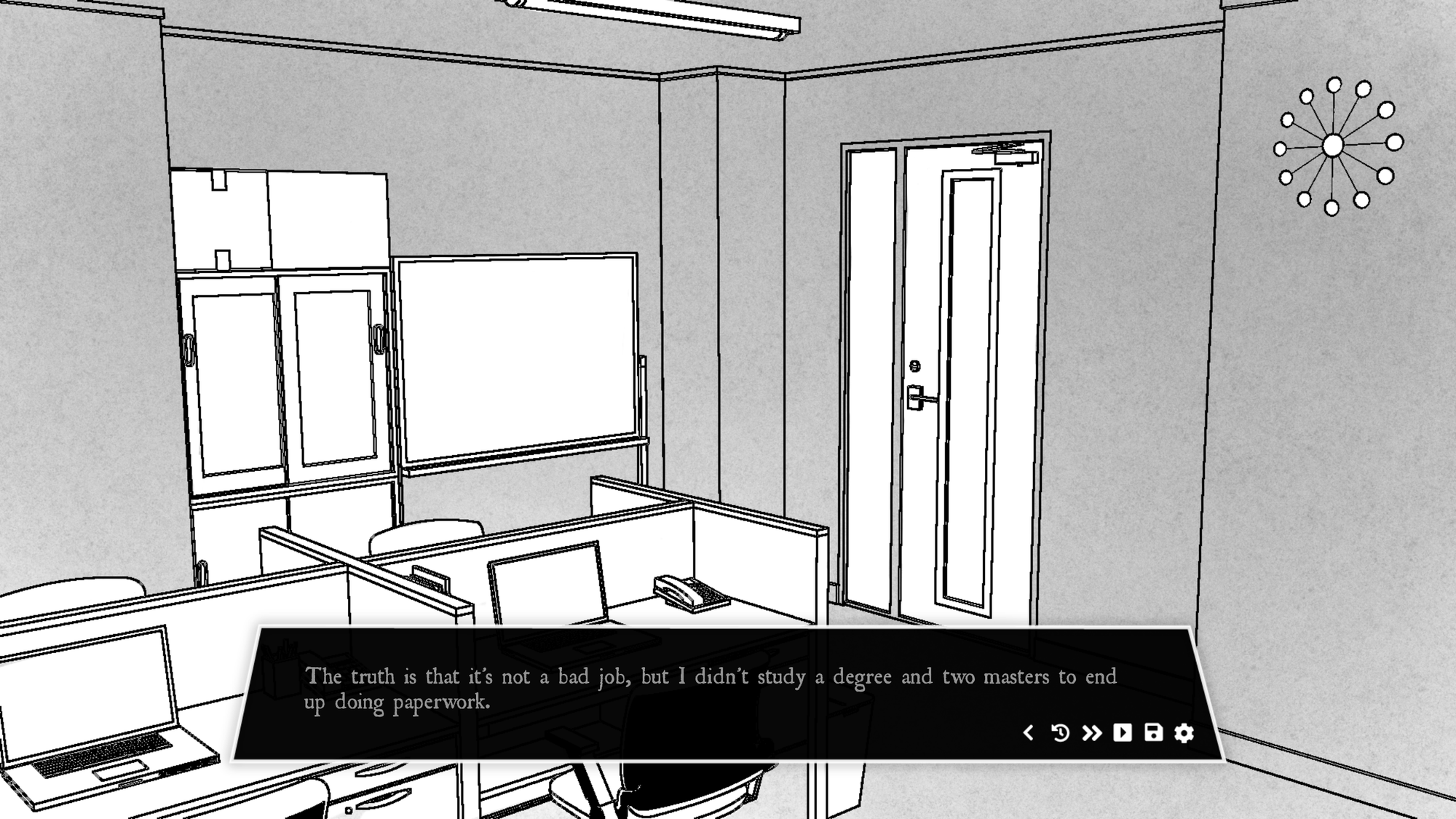 What seems like a never-ending cycle ends up serving as a timeline for this black-and-white visual novel. Following a woman who lives a mundane life, you'll tag along with her through just a few days of her rigid regime, one that she follows just to get by. As you play through Ill days, you may encounter faces that are regular and faces that are not-so-regular. If it really gets rough, you may end up seeing a being that's more…monsterous than human.