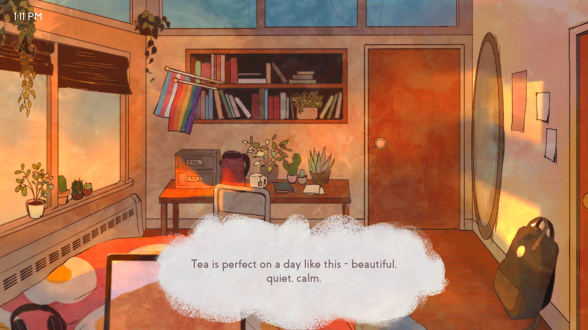angela's artistic direction for this game really nailed it for me. The soft brushstrokes and warm colour palettes carried the rough and even unpleasant topics well. missed messages is an immediate add to my list of "comfort games," one that I see myself going to on occasion just to relive the beauty of its narrative.