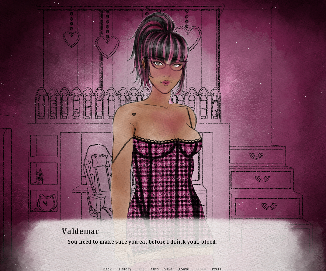 When I first encountered Parfum Nostalgique, I was awestruck. Jaw on the floor. I was pulled to it. Drawn to it. I was so enamored by the hand-drawn style seen in every single part of the game. It was love at first click. Therapist-by-day-and-dom-vampy-by-night Valdemar is by far one of the most beautiful OCs I've ever seen. Luscious locks of blonde hair with a bold red outfit that has just the right touch of cheekiness (literally). If you love a good art-savouring session and a well-polished, downright sexy story with it, I highly recommend this one.